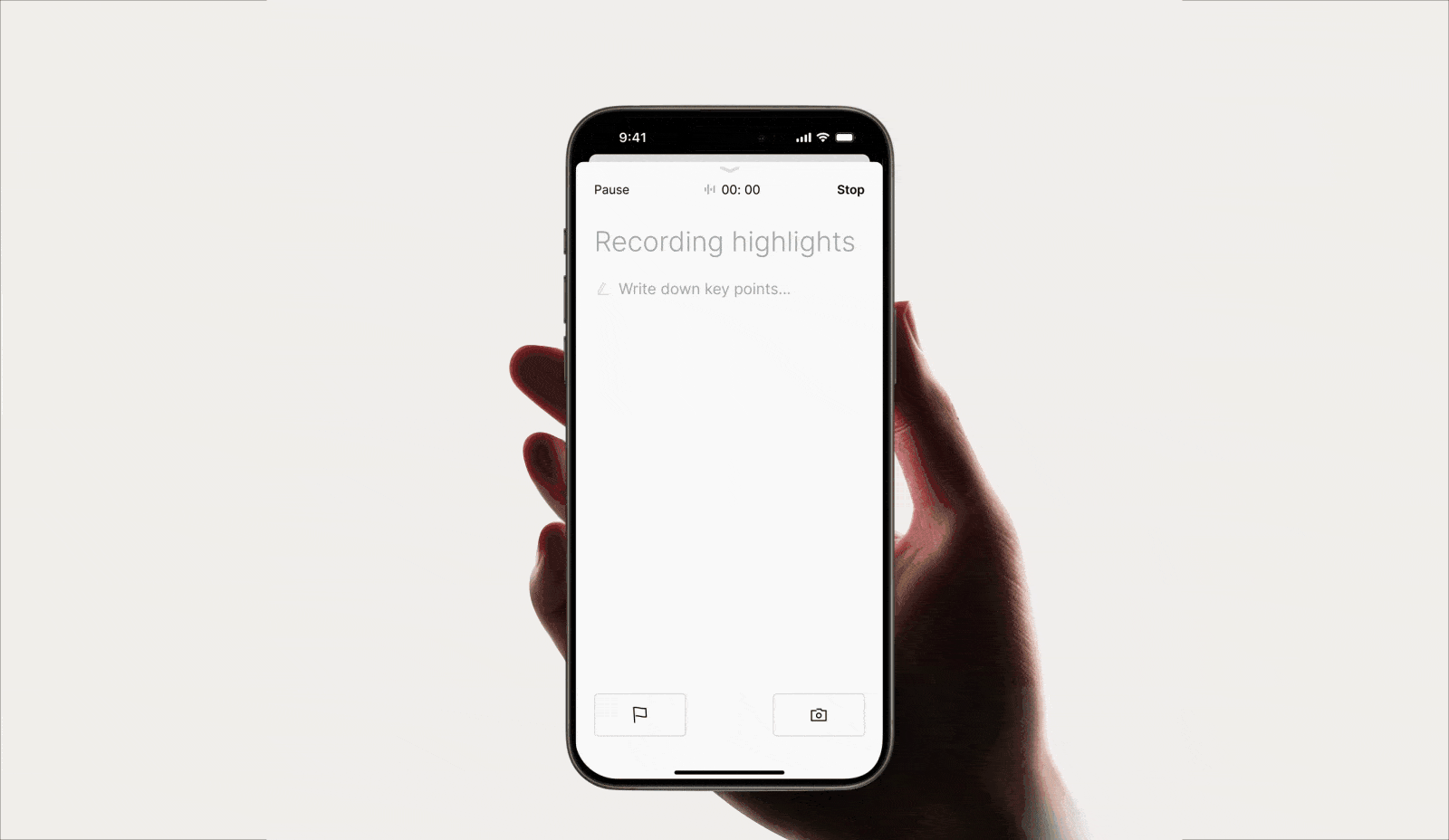 Highlight clinical insights with a short press. Plaud marks each moment precisely, signaling AI to prioritize key symptoms and context.